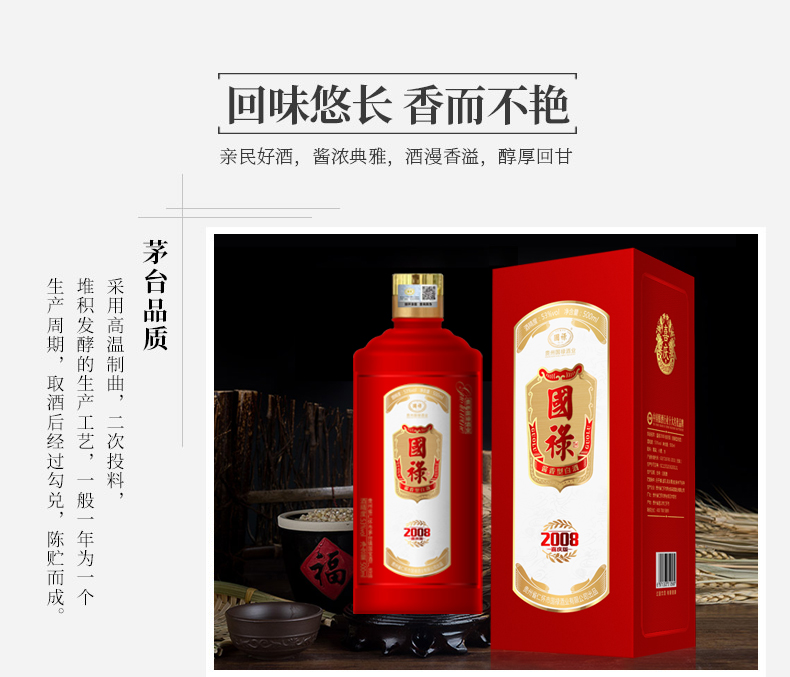 醬香型白酒分大曲醬香、麩曲醬香。大曲醬香酒主要是以四高兩長,一大一多高溫制曲,高溫的堆積,高溫的發酵,高溫的流酒,發酵期長,貯
